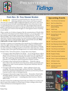 26 9:00 am Traditional Worship Service 10:15 am How to Read the Bible 11:00 am Gathering Worship Service 12:00 pm Pumpkin Painting 12:30 pm 5th-8th Grade Youth Group 3:00 pm 9th-12th Grade Youth Group 7:00 pm ACA Support Group | 27 1:00 pm Monday Bible Study 5:30 pm Girl Scouts 6:30 pm Deacons Meeting 7:00 pm A. A. Meeting | 28 8:00 am Recovery Court Check In 5:30 pm One Anothering 7:00 pm Boy Scouts Troop #246 | 29 12:00 pm Weekly Visio Divina Group 6:15 pm Carillon Ringers Rehearsal 6:30 pm Cub Scouts 7:15 pm Geneva Choir | 30 7:00 am Thursday breakfast discussion group at Russ' 8:30 am Recovery Court Gathering 7:00 pm Thursday Night Discussion | 31 |