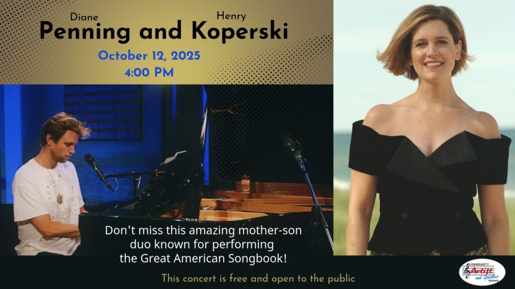 Join soprano Diane Penning and her son, composer/pianist Henry Koperski, for an unforgettable performance celebrating the timeless melodies of the Great American Songbook—beloved standards, Broadway favorites, and more. Both classically trained and internationally experienced, this dynamic duo brings warmth, charm, and exceptional artistry to every note.
