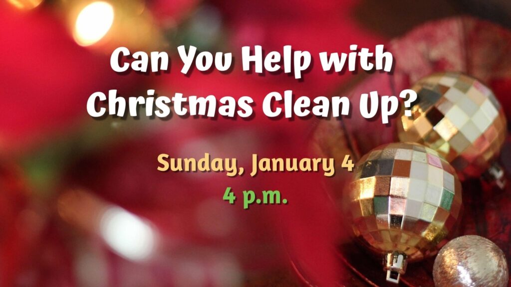 We’ll start at 4 p.m. on Sunday, January 4. Come for as little or as long as you can – every pair of hands helps!!
