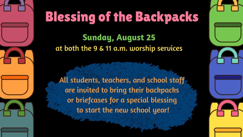 Believe it or not, the first day of school is just around the corner! If you are heading back to school, come to worship on August 25 for a special blessing for the new school year.