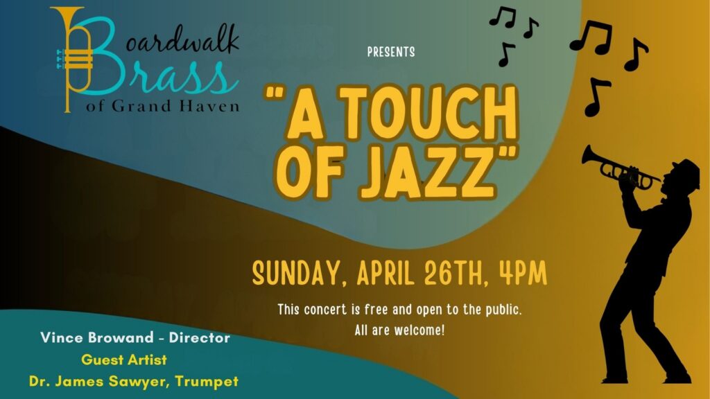 BBGH presents for your musical enjoyment “A Touch Of Jazz” featuring brass band arrangement of popular Jazz standards. We will feature the music of Cole Porter, George Gershwin, Duke Ellington, with a little Van Morrison thrown in for good measure! Our guest soloist with be Dr Jim Sawyer, well known throughout West Michigan as a jazz musician, director, educator, and music workshops. We are so pleased to have him join us for the afternoon!