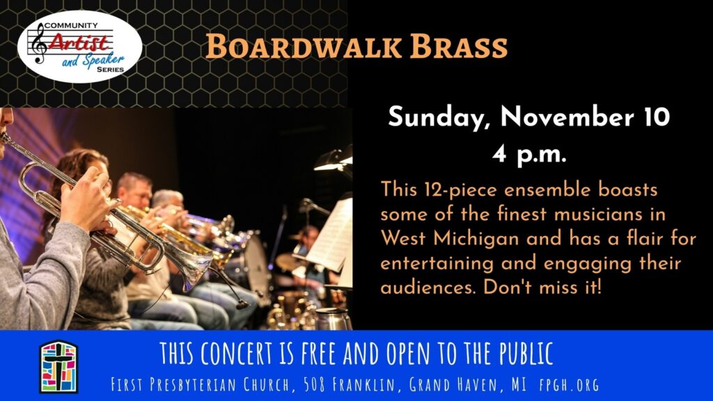 This 12-piece ensemble boasts some of the finest brass musicians in West Michigan and offers a wide variety of traditional and contemporary brass band music. Along with a flair for entertaining and engaging their audiences, the BBGH takes great pride in presenting interesting and challenging programs at a high level of performance and musicianship. Boardwalk Brass is led by Director of Music Vince Browand.