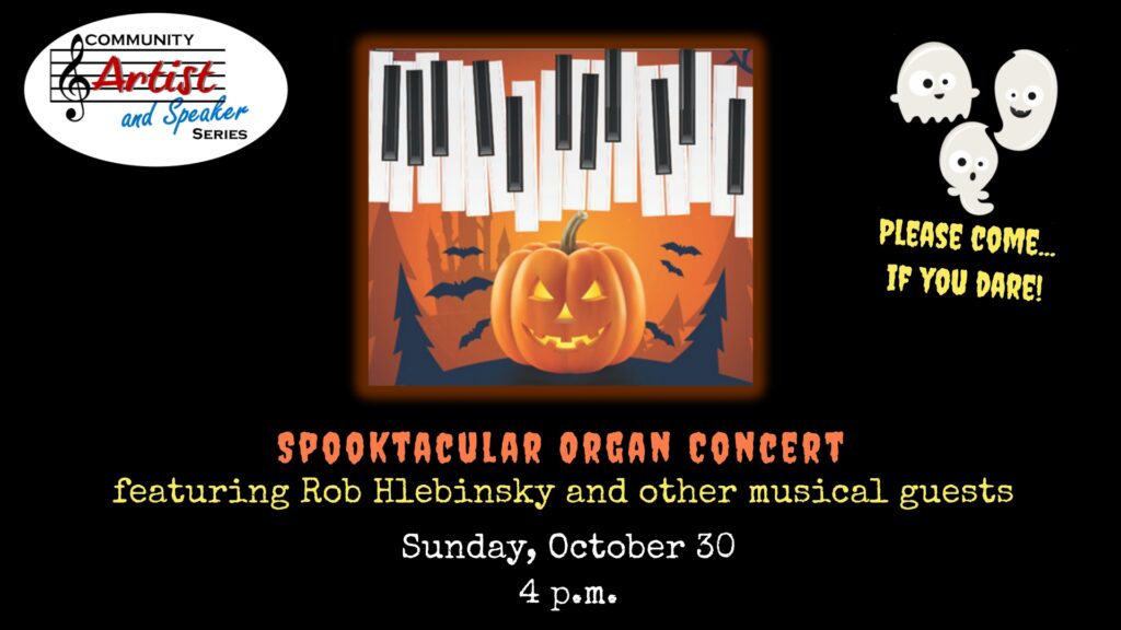 FPGH organist Rob Hlebinsky and other musical artists from West Michigan participate in a frighteningly delightful program of organ music that is sure to entertain kids and parents alike. Classical, popular, and Broadway hits will be featured.
